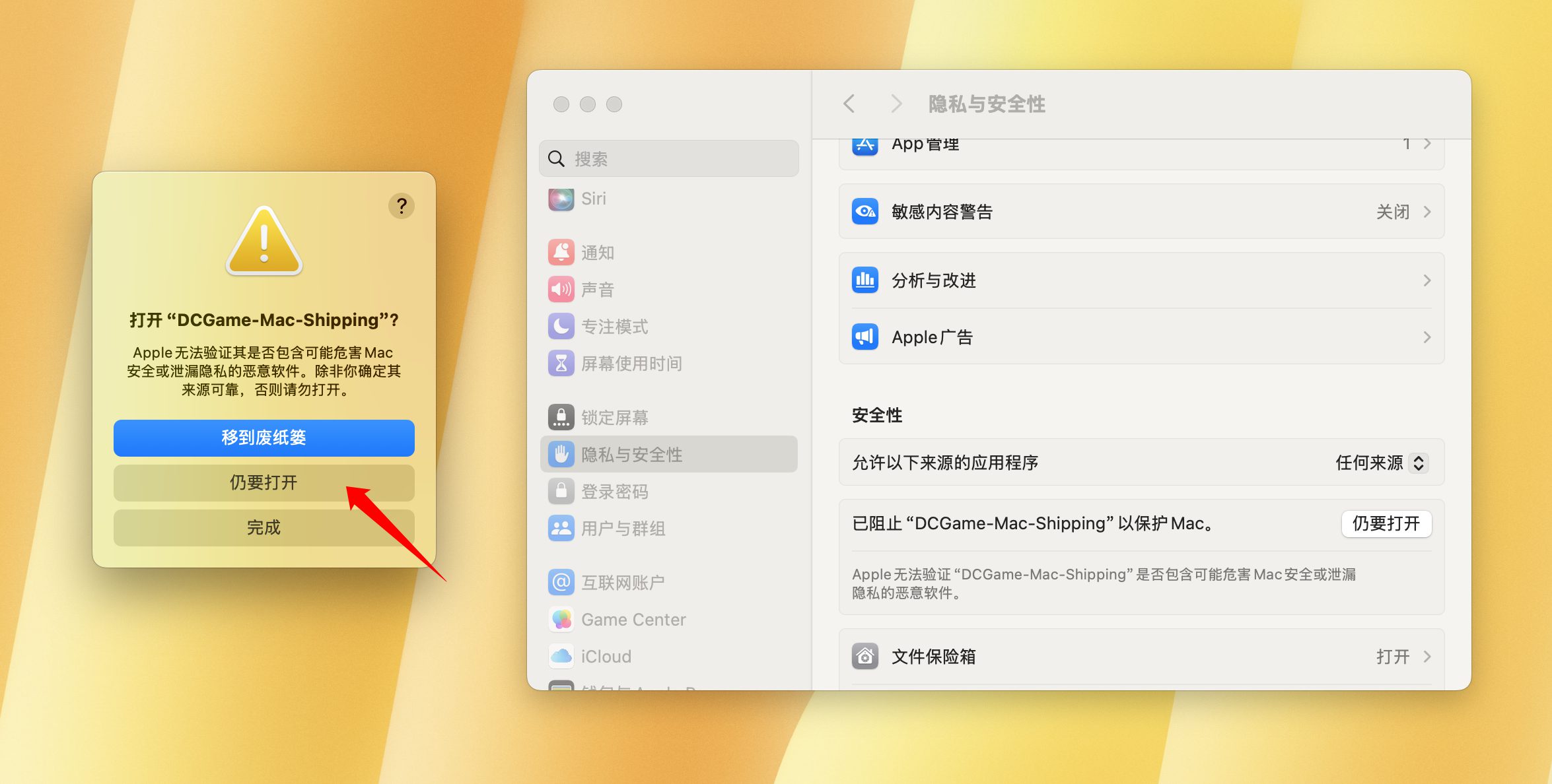 提示打不开,无法验证什么的,系统设置--安全性与隐私--安全性,选择仍要打开