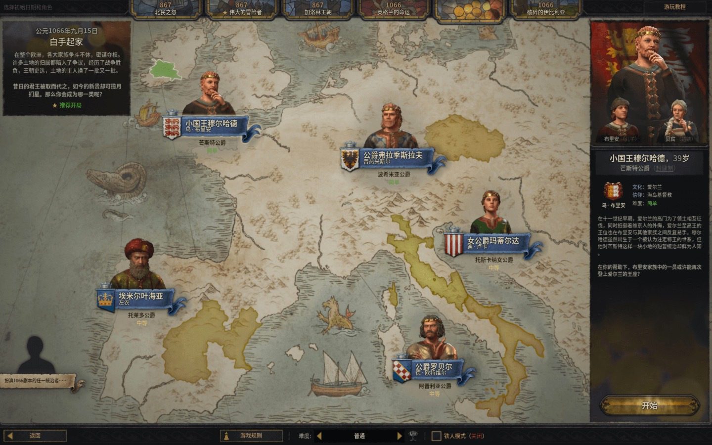 仔细研究中世纪,掌握您的家族并扩展您的王朝。始于西元 867 或 1066 年,获得领土、头衔与附庸国,巩固配得上您皇室血脉的王国。无论您的离世是否在计划之内,都不影响大局,您的血统会由新的可游玩角色所继承。