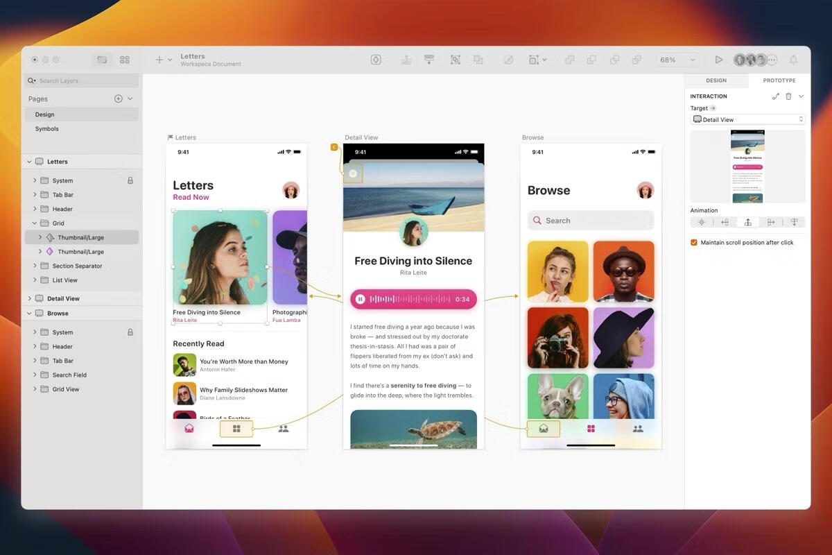 🖌️ 作为Mac平台最受推崇的矢量绘图设计工具,Sketch以「轻量级专业软件」的定位在UI设计领域持续领跑。与传统设计工具不同,它通过极简的暗色界面、精准的像素级控制和完善的符号系统,将移动应用设计效率提升300%以上。特有的智能参考线能自动识别元素间距,配合云端组件库同步功能,让设计师在Mac设备上实现从低保真原型到高保真交付的无缝衔接。