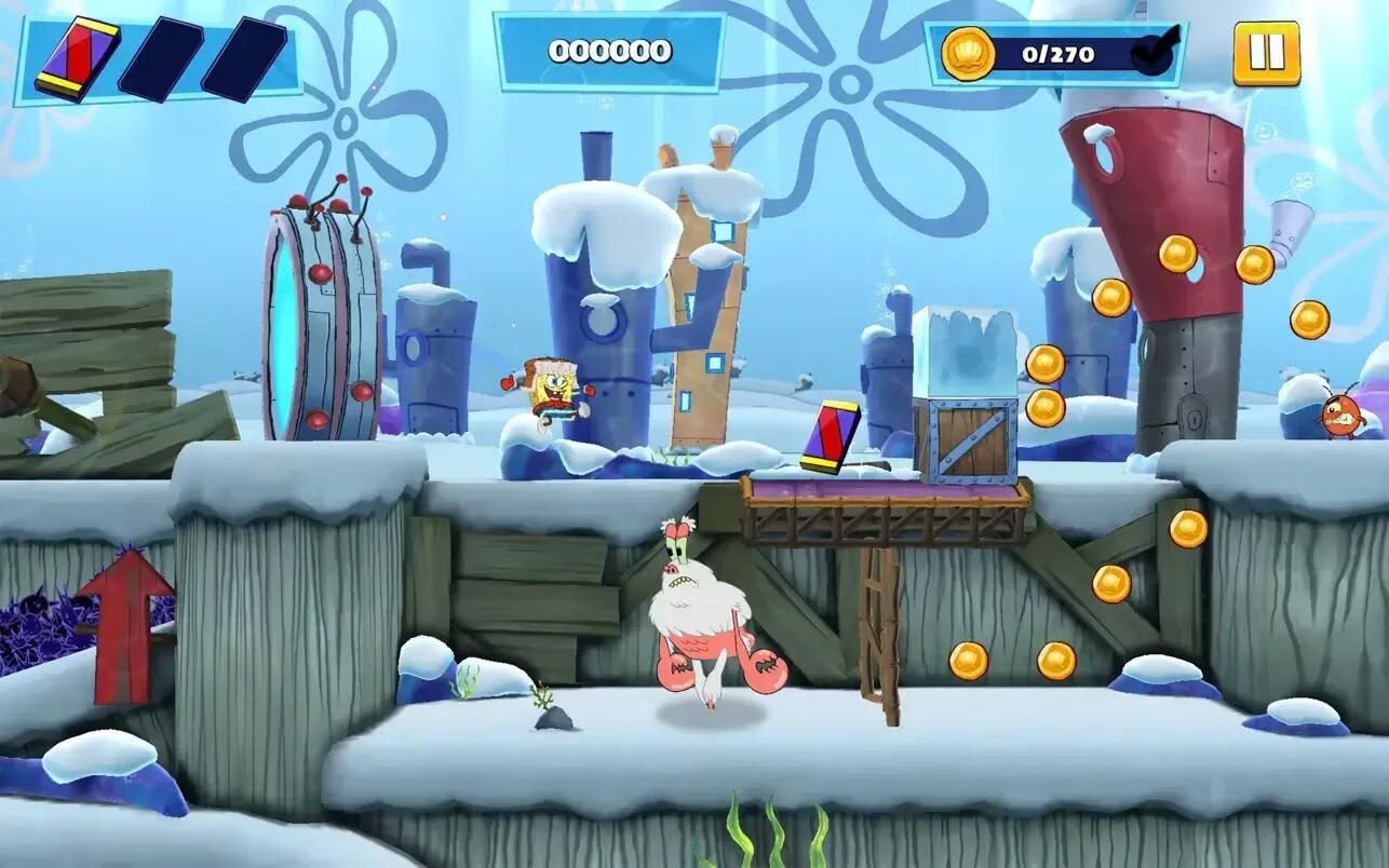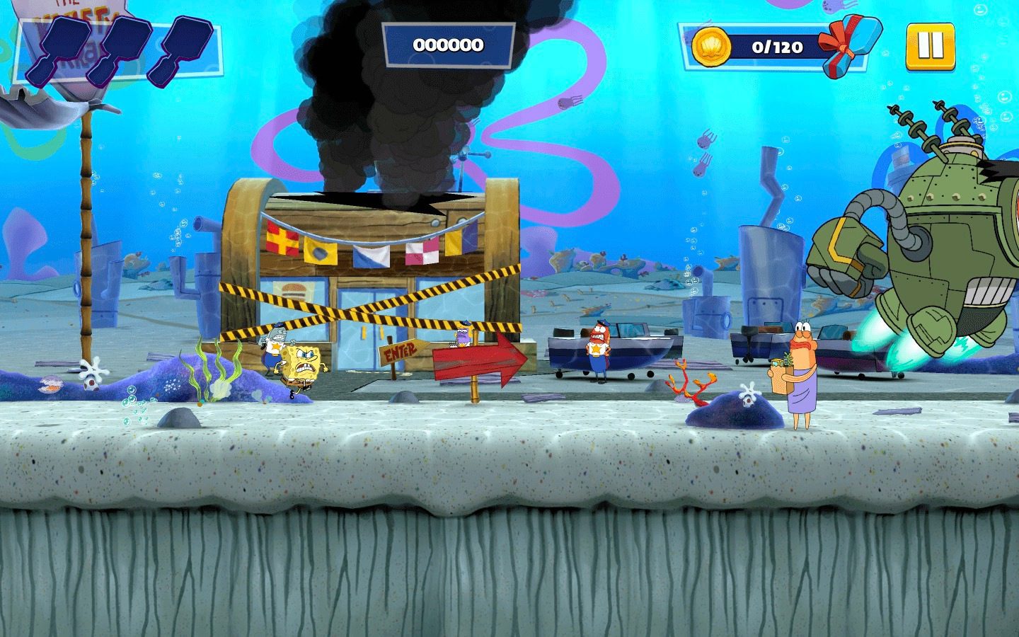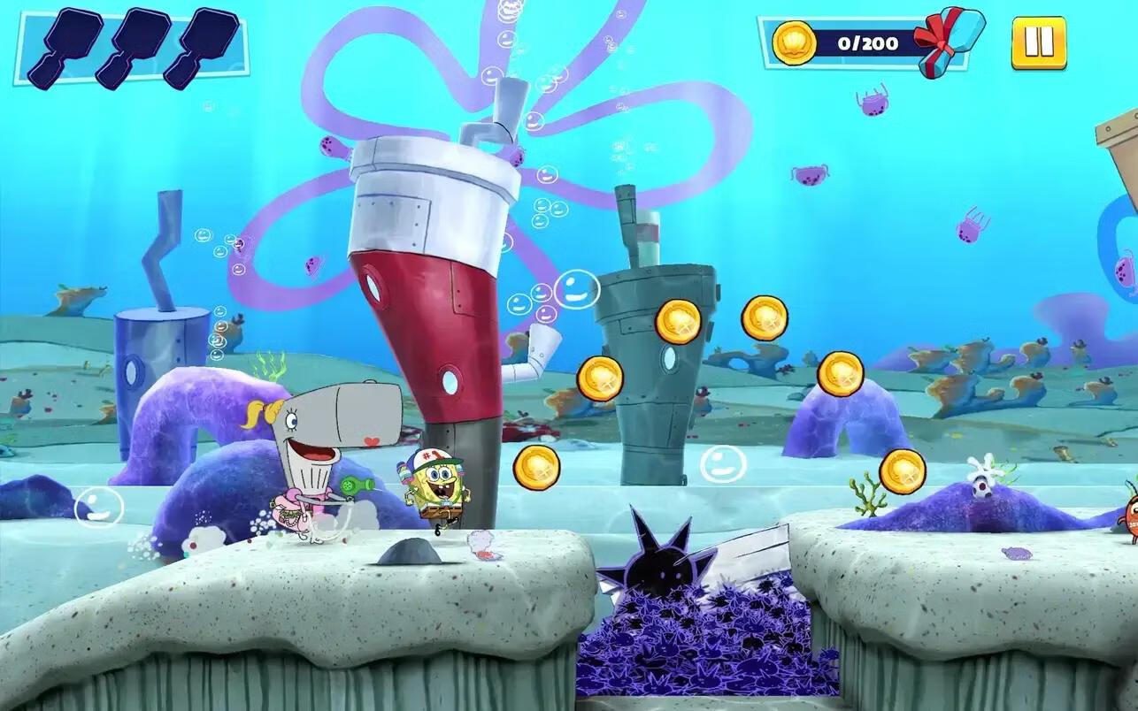 比基尼海滩有大麻烦了!邪恶的“主谋”喜来登·J·痞老板再次策划了一个窃取美味蟹堡秘方的计划。这一次,他召集了自己的堂兄妹大军,要抓走海绵宝宝所有的朋友!在比基尼海滩史上最史诗级的侧滚画面任务中扮演海绵宝宝,一路闯关!探索、收集金币和锅铲,并粉碎障碍,同时海绵宝宝会争取时间拯救他的朋友、击败痞老板的手下,然后夺回秘方。留意比基尼海滩上您最喜欢的居民……您永远不知道自己会碰到谁!