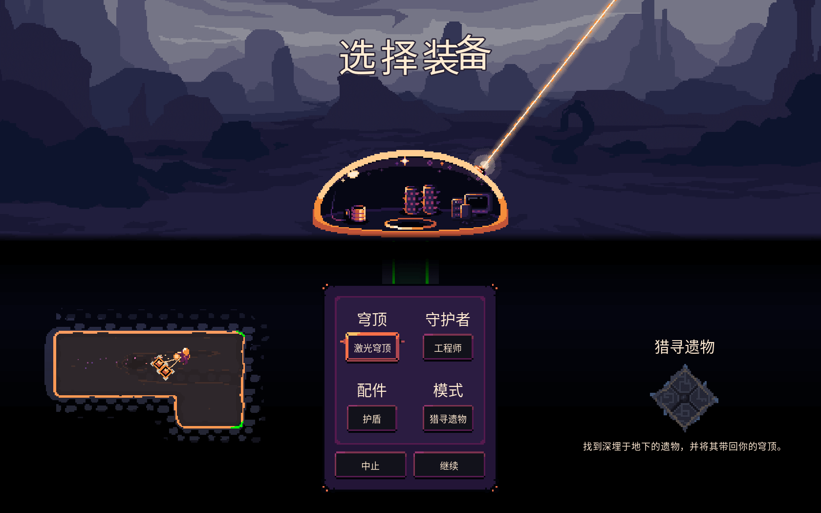 在《穹顶守护者》这款创新的 roguelike 生存采矿游戏中,迎战一波又一波的敌对攻击,保卫你的穹顶吧。利用每波攻击之间的空隙,挖入地下寻找宝贵的资源和文物;明智利用这些资源,选择强大的升级和加成。《穹顶守护者》以精美的像素艺术异星为背景,营造出引人入胜的氛围,而其音乐曲目更是将悦耳的旋律和合成器的创作糅合在一起,同时又融入了喷气机时代般的惊奇感,一定让你欲罢不能。