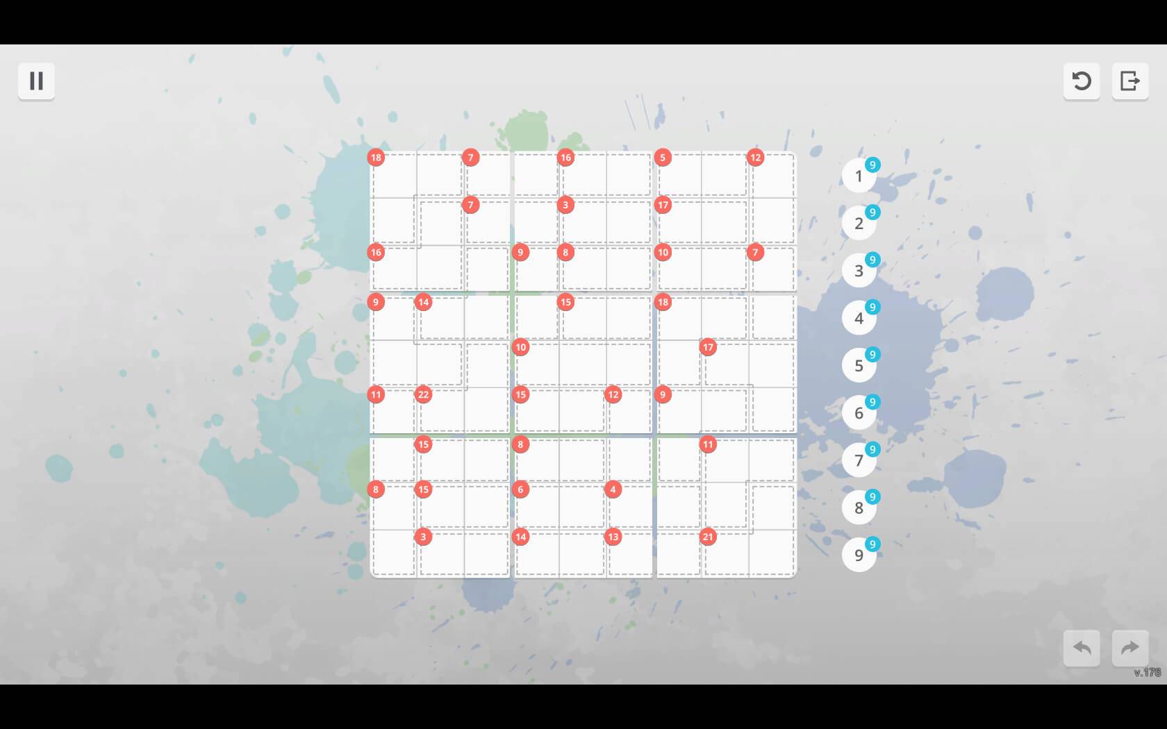 杀手数独的独特之处在于,在标准数独的基础之上,还融合了数合游戏的玩法。数独网格中不再会预填数字作为提示,取而代之的是,网格被划分分多个虚线圈起来的区域,并给出区域内所有格子上数字的和作为提示。