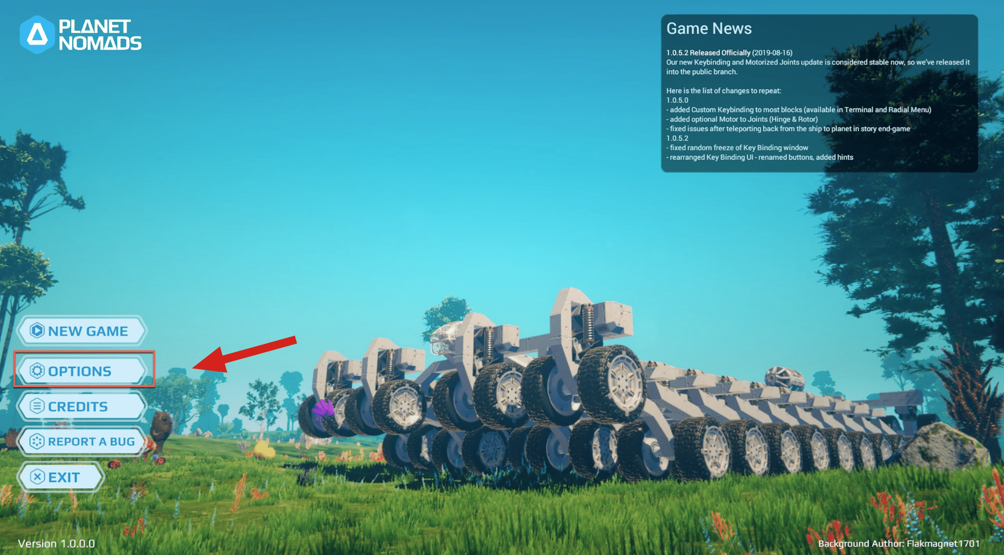 1.进入星球流浪者游戏后,点击左下角的“OPTIONS”,如下图: