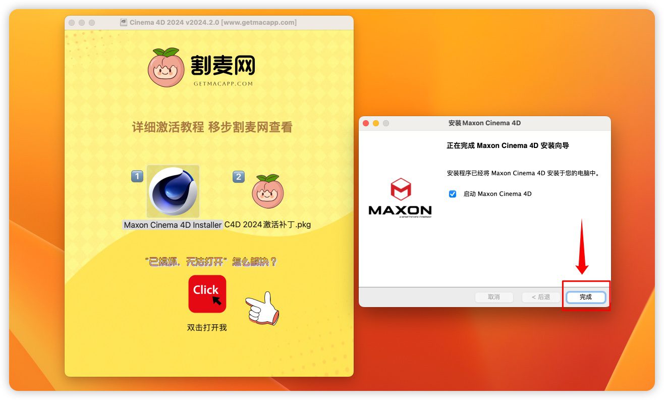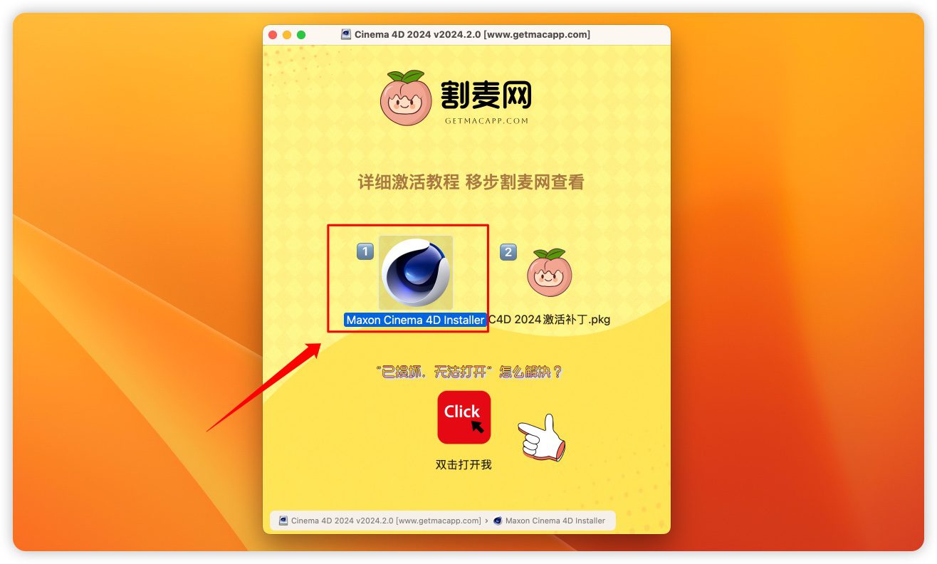 3.返回镜像包,双击Cinema 4D 2024激活补丁.pkg,根据提示安装完成即可破解成功