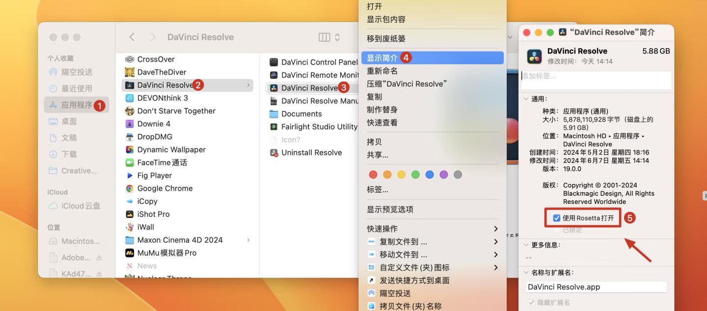 4.M芯片电脑到这里需要手动勾选rosetta,否则打开会闪退!