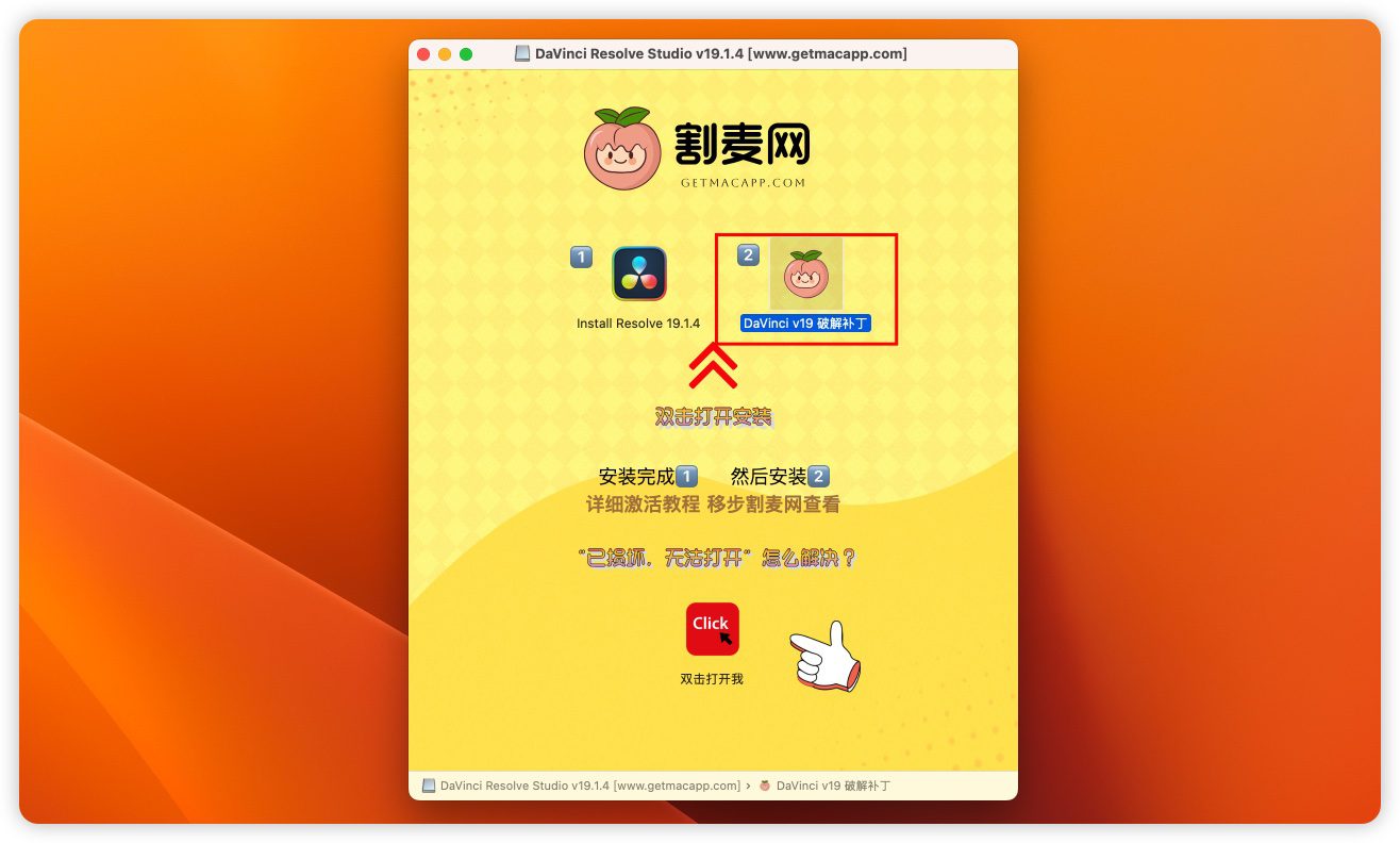 3.退出软件后打开达芬奇软件破解补丁,根据安装引导即可完成激活