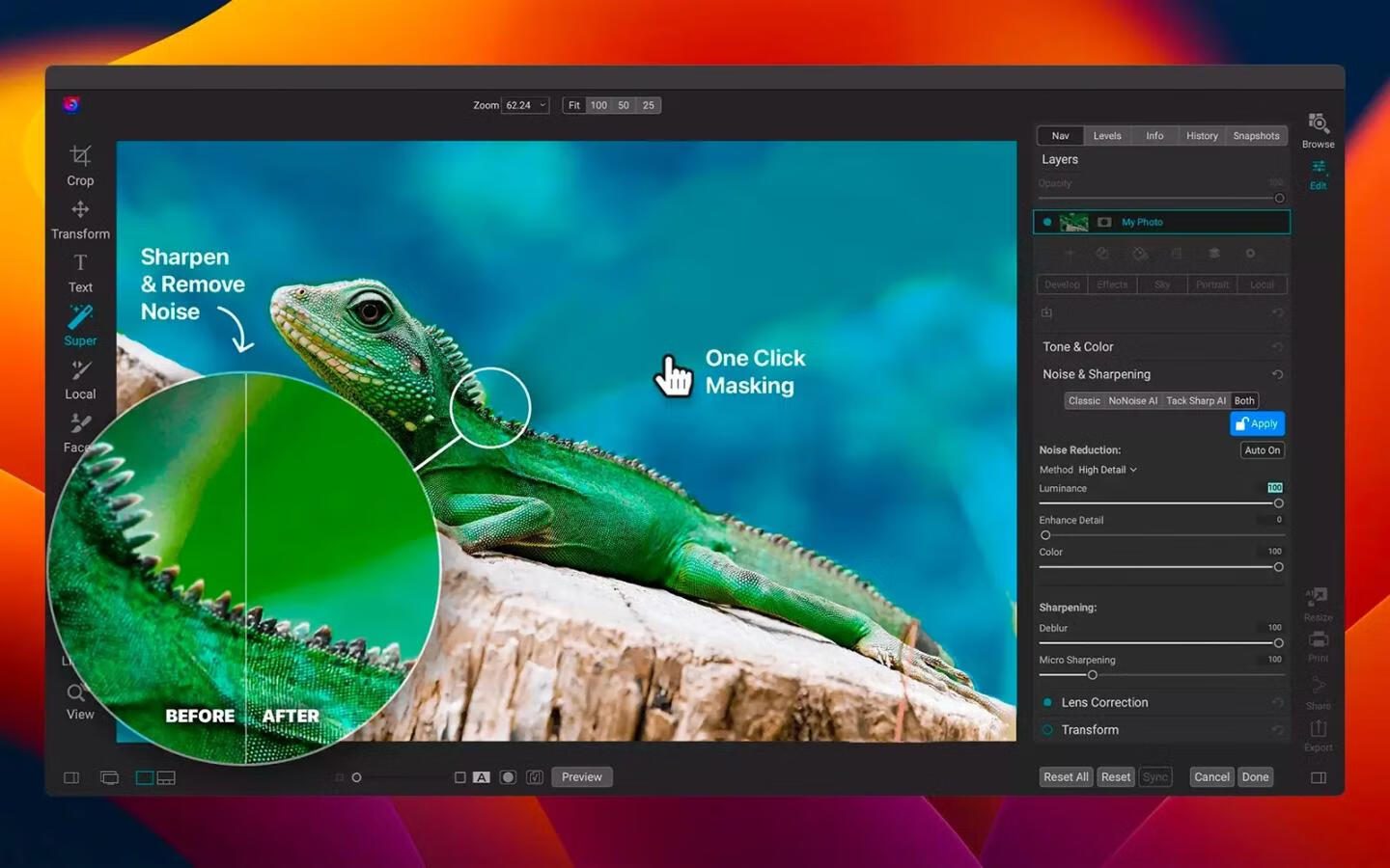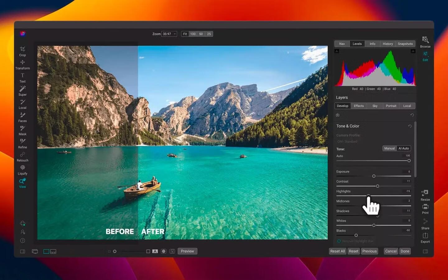 在众多Mac照片编辑软件中,ON1 Photo RAW 2024以其一体化AI智能修图+专业级工作流管理的差异化定位脱颖而出。这款软件不仅支持800+相机的RAW文件与主流图像格式(如JPEG/DNG/PSD),更通过无损编辑技术和AI智能辅助工具实现精准调色与高效修饰。无论是职业摄影师批量处理高精度图片,还是爱好者追求创意效果,它都能提供从整理到输出的完整解决方案,堪称“桌面端暗房革命”的代表作💡。