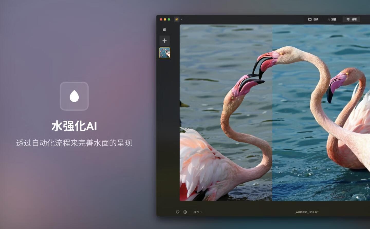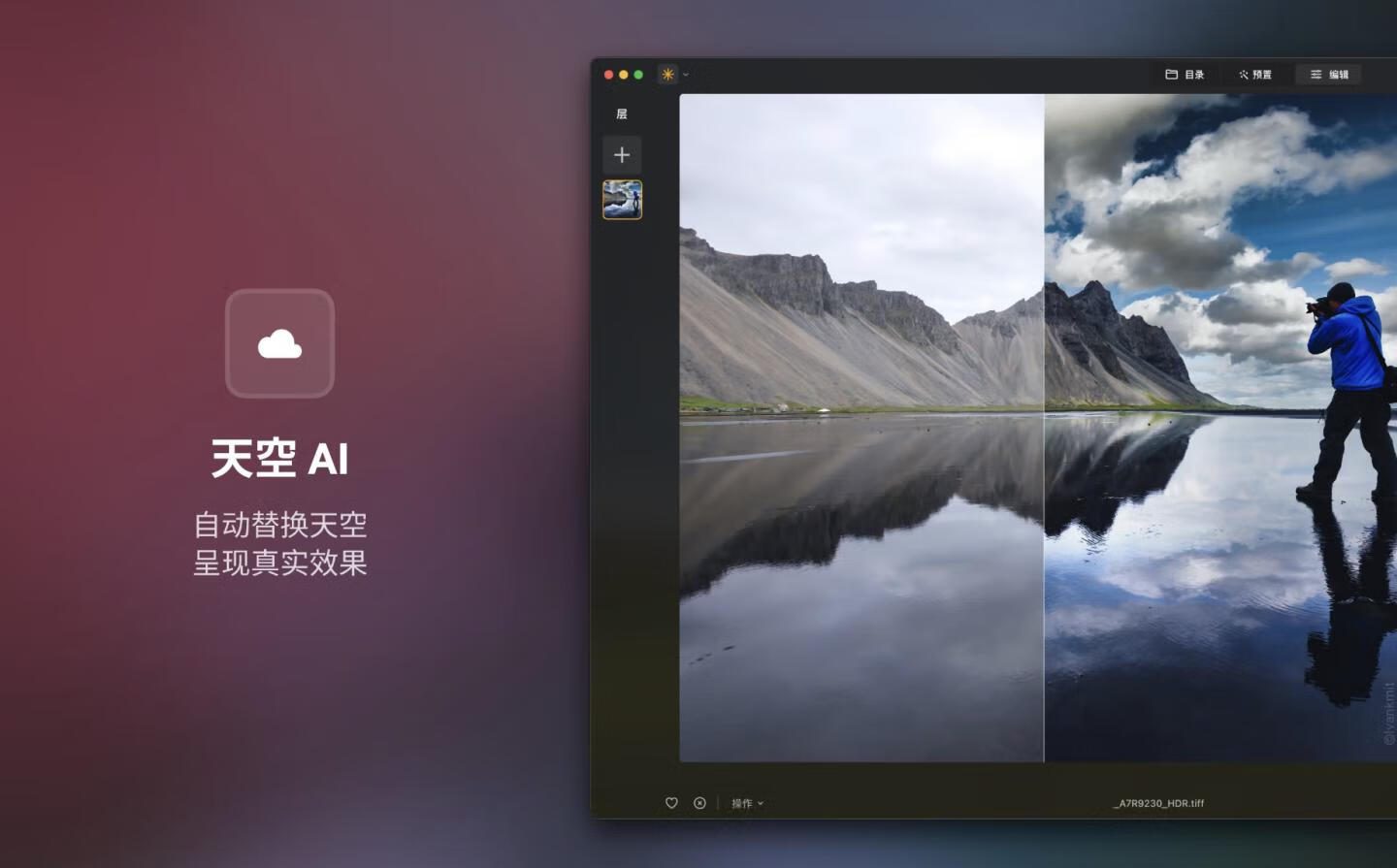 原生支持M芯片,优化Apple Silicon性能;兼容Photoshop/Lightroom插件,无缝衔接专业工作流。