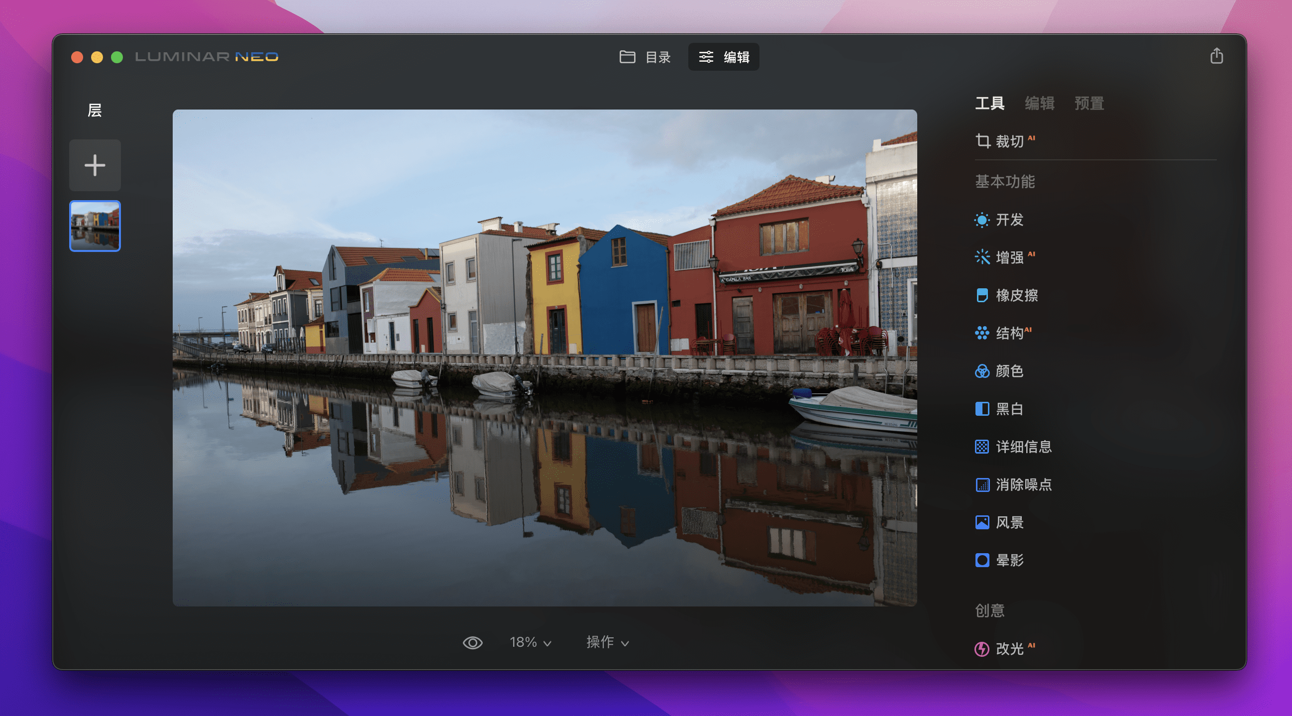 图层与AI蒙版:支持多图层叠加,结合MaskAI自动生成精准选区,简化局部调整。