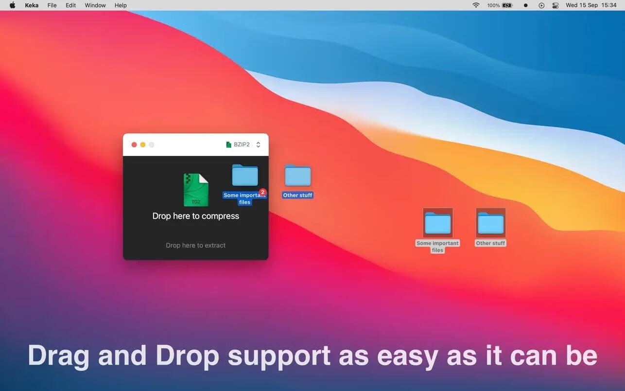 Dock栏闪电操作:将文件/文件夹拖拽至Dock栏的Keka图标,自动生成压缩包,默认保存至原路径。