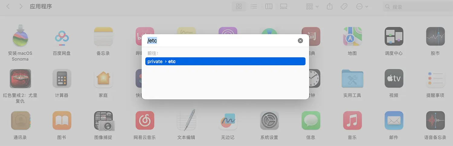 输入/etc 并按回车键前往etc文件夹