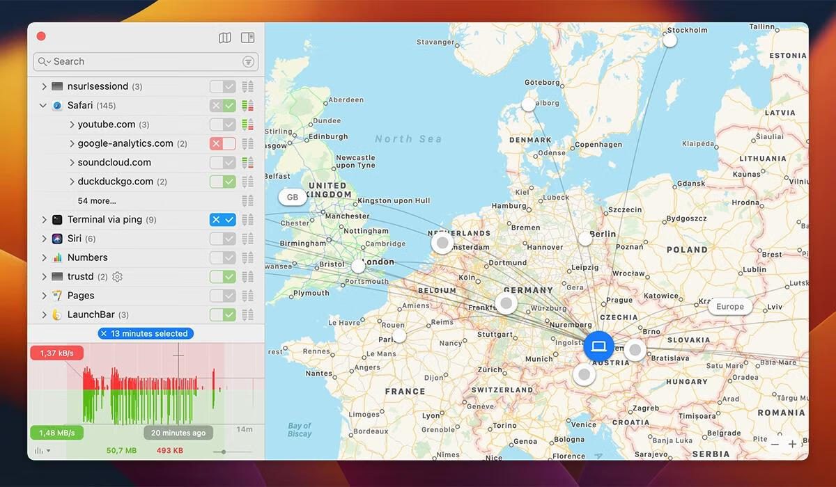 在macOS安全防护领域,Little Snitch以「可视化网络边防系统」重新定义隐私守护标准🛡️。这款Mac网络流量监控工具通过实时流量图谱,将隐形网络连接转化为可交互的3D地图,让后台上传、数据追踪等行为无所遁形。区别于传统防火墙的被动防御,其独创的「隐身模式」可主动伪造虚假网络指纹,配合70000+预置规则库,为远程办公、在线支付等场景提供银行级防护,堪称数字时代的「网络流量红绿灯」。