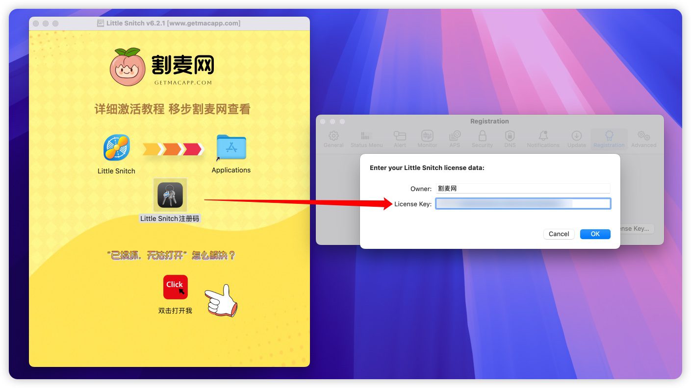 8.在注册界面输入Little Snitch 注册码,点击OK如图
