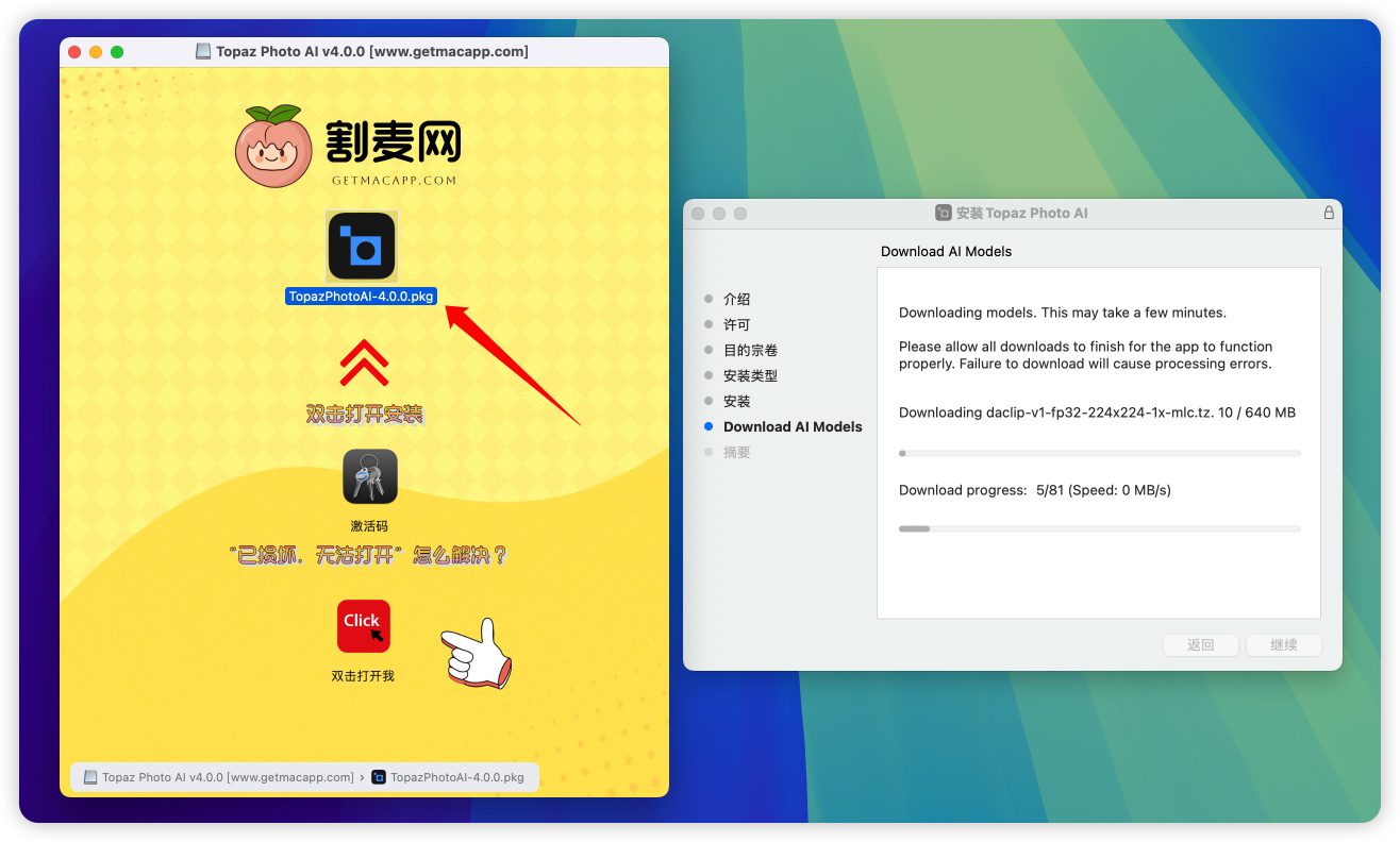 双击镜像包内的.pkg文件,按照安装引导起进行安装即可(过程有点慢,请耐心等待。如果国内网络无法正常加载,请挂梯子科学上网。)