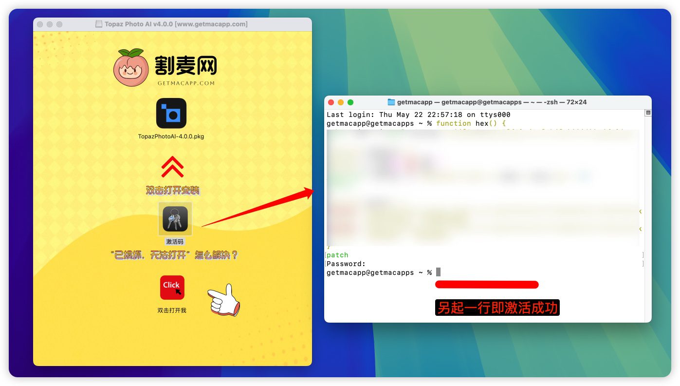 打开终端,将注册码复制到其中,并回车,输入锁屏密码(输入密码看不见)再次回车