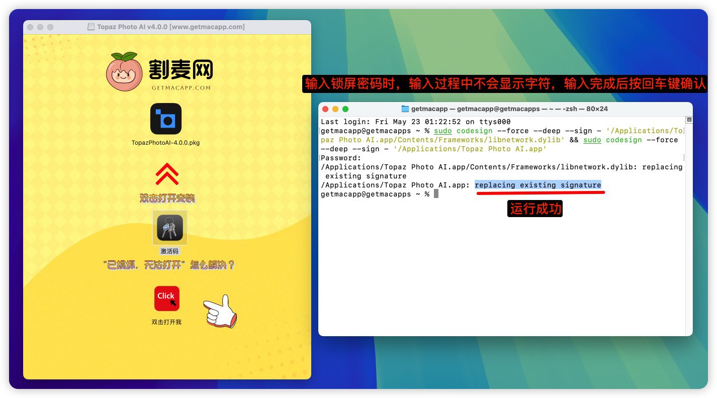 sudo codesign --force --deep --sign - '/Applications/Topaz Photo AI.app/Contents/Frameworks/libnetwork.dylib' && sudo codesign --force --deep --sign - '/Applications/Topaz Photo AI.app'