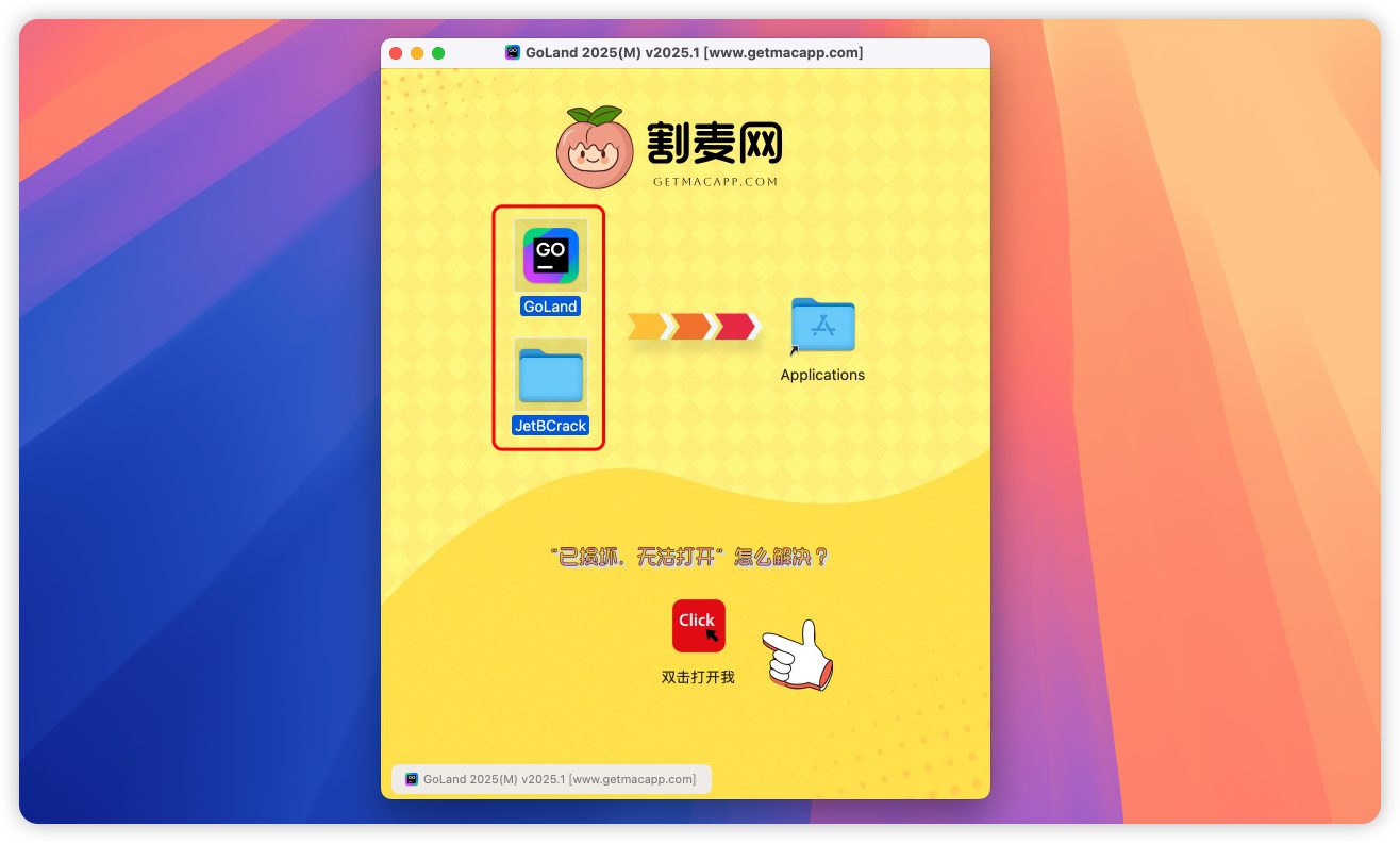 1.打开下载好的软件包,拖动软件和JetBCrack到右边的Applications文件夹中进行安装