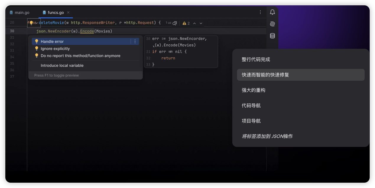 错误预判系统:编译前标记潜在 Goroutine 泄露与空指针风险,提供一键修复方案。