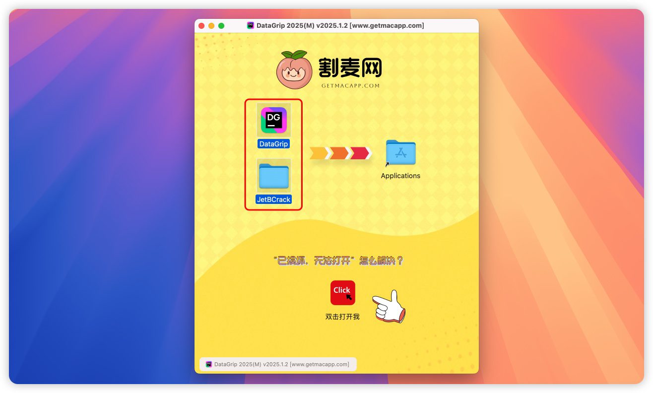 1.打开下载好的软件包,拖动软件和JetBCrack到右边的Applications文件夹中进行安装