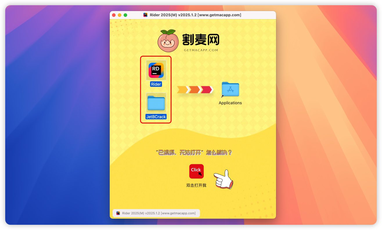 1.打开下载好的软件包,拖动软件和JetBCrack到右边的Applications文件夹中进行安装
