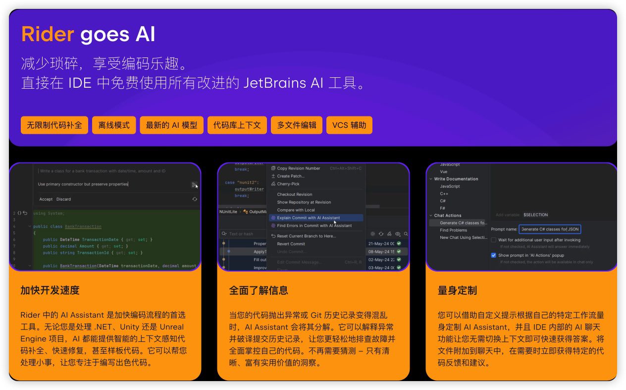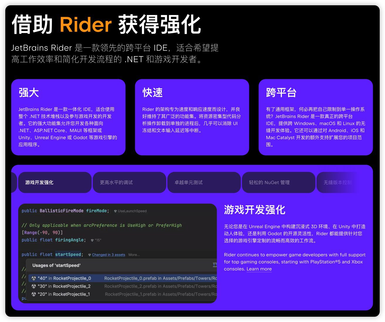 👉 JetBrAIns Rider 2025作为专为 .NET 与游戏开发 设计的跨平台智能中枢,凭借 AI增强的代码洞察力 和 全栈开发支持,重新定义了高效编码的边界。它不仅支持 .NET Framework/Core/10 Preview 全技术栈,更通过 混合模式调试 和 云原生部署优化,将复杂项目的构建速度提升200%,尤其适合需要兼顾跨平台兼容性与性能优化的 Unity/Unreal 开发团队。