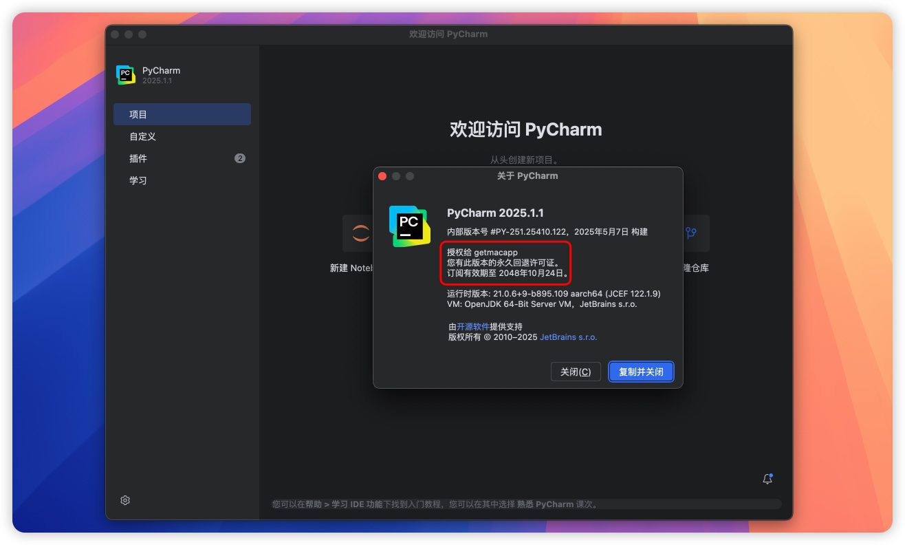 🎉官方已提供中文!该密钥支持全套JetBrains产品,一码通用激活,✅ 支持intel ✅支持M1-4,🌟后续版本也只同步这篇文章