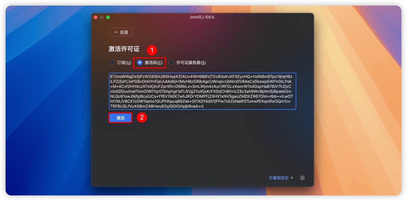 选择激活码,粘贴刚刚复制的密钥,点击激活