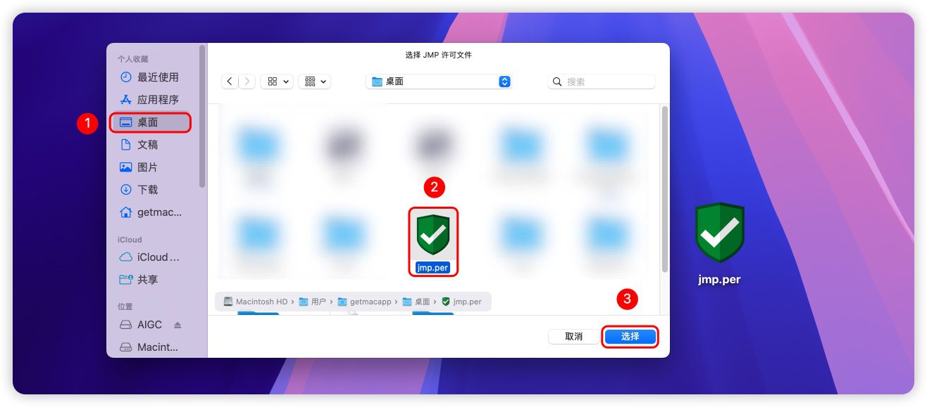 安装完成后返回镜像包,拖动jmp.per到桌面