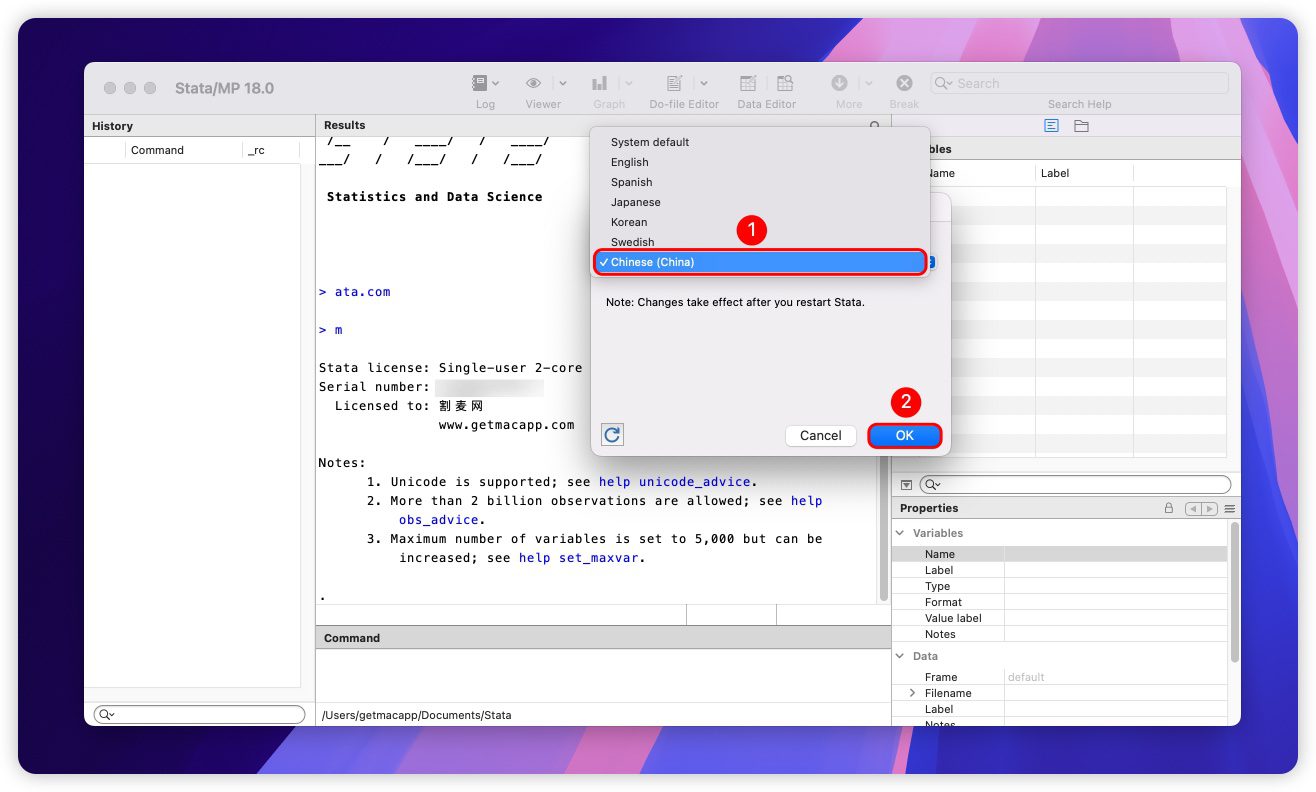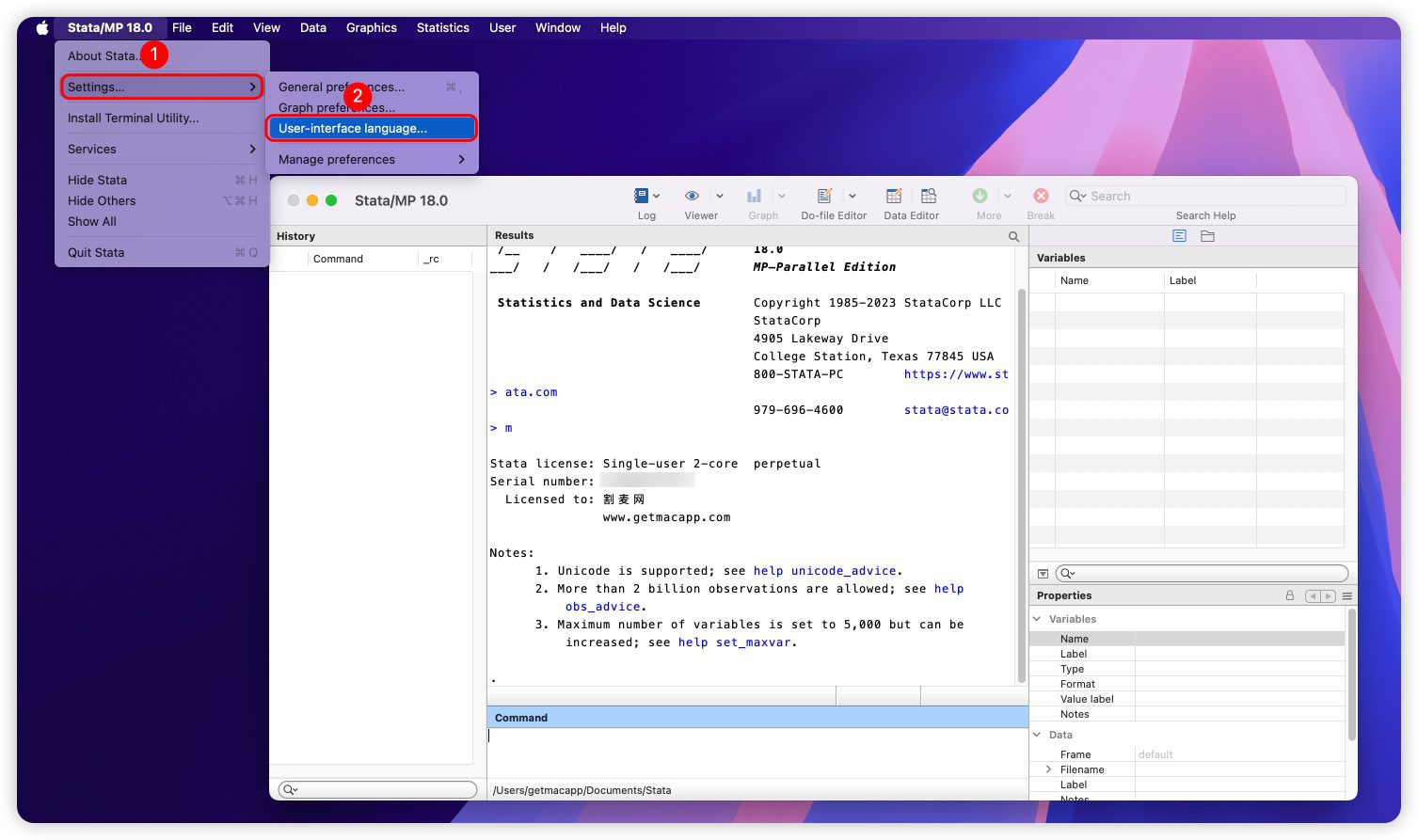 打开软件--点击左上角的Stata--Preferences--Language-选择Chinese 重启软件即可