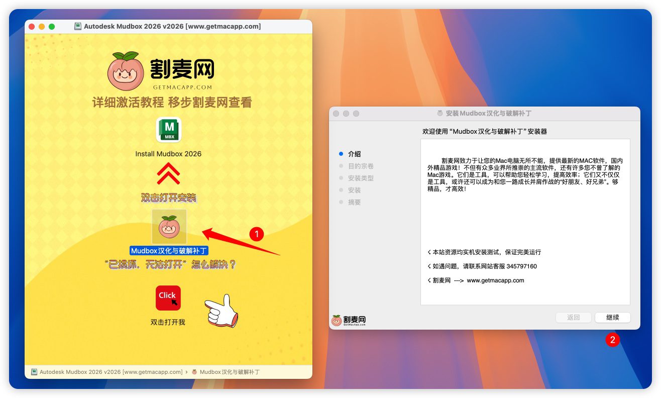 1.Mudbo 2026 mac下载完后打开镜像包,双击【Install Mudbo 2026】进行按照引导提示完成安装