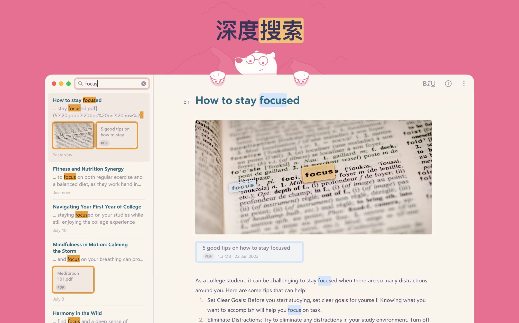 - 搜索图片和 PDF 中的文本(需订阅 Bear Pro)