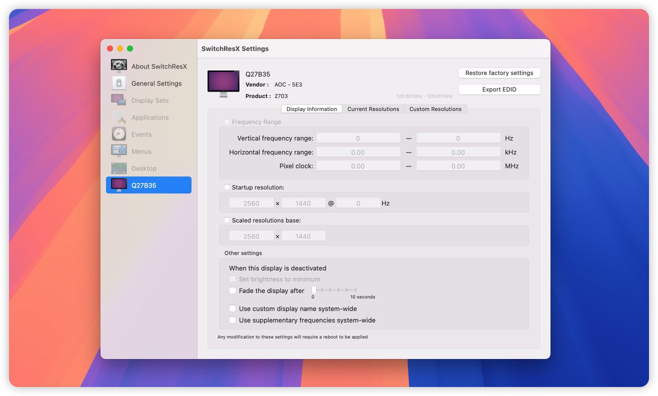 突破macOS限制,自定义任意分辨率/刷新率组合(最高支持8K@240Hz),可保存为情景预设快速调用。 -