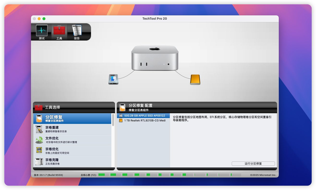 💡冷技巧:按住Option键启动TechTool Pro 20,可直接进入急救模式处理无法开机的严重故障!