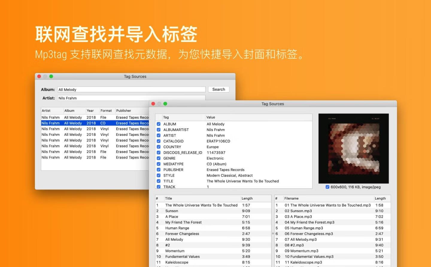 适用于Mac的Mp3tag支持元数据,并支持从Discogs和MusicBrainz导入。