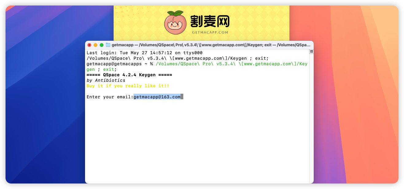 3.返回镜像包,双击打开注册机,输入邮箱地址;getmacapp@163.com(你们自行切换自己的邮箱吧,我的邮箱可能被封号了)