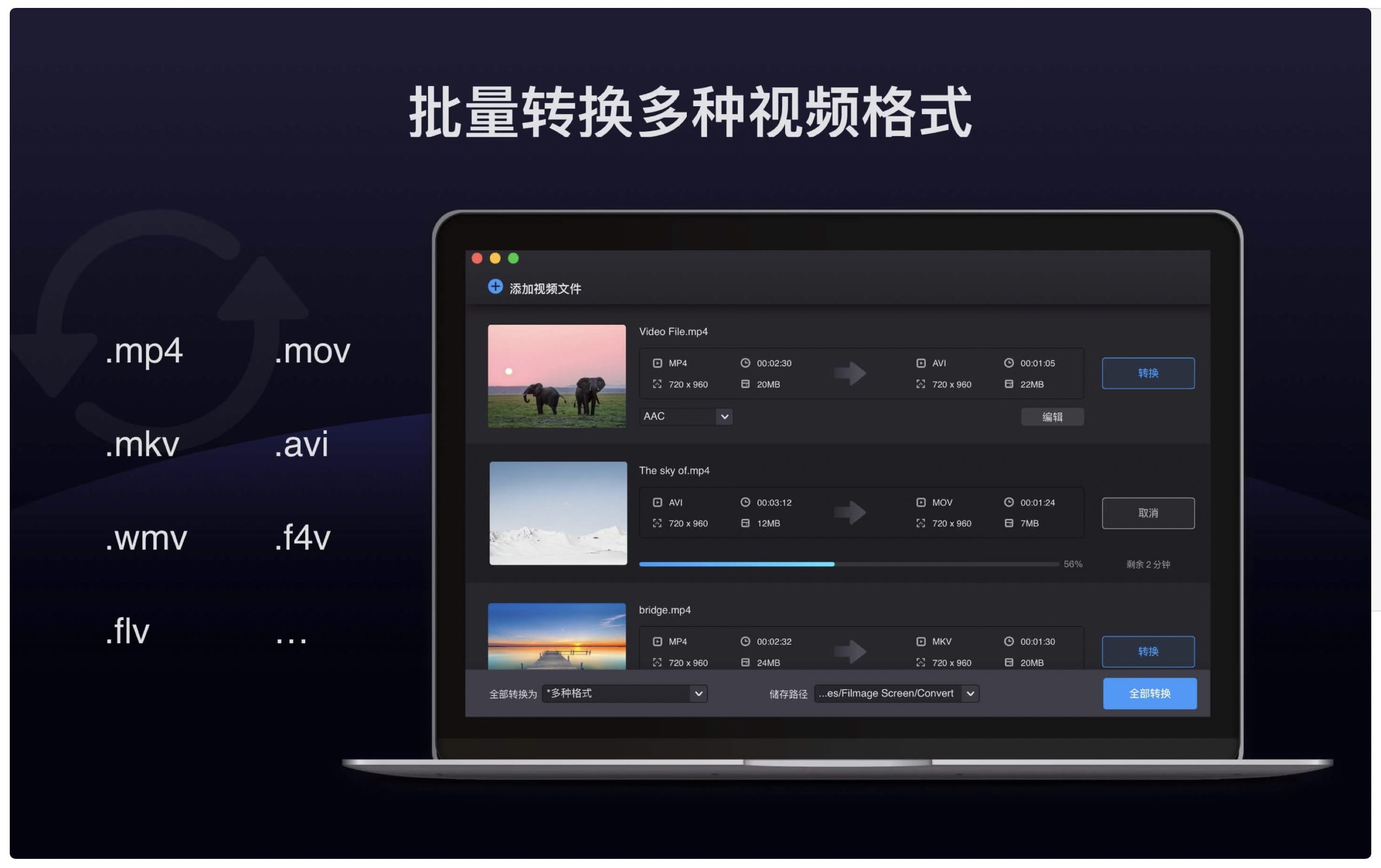 批量转换500+格式(MP4/MOV/MKV等),速度提升30倍