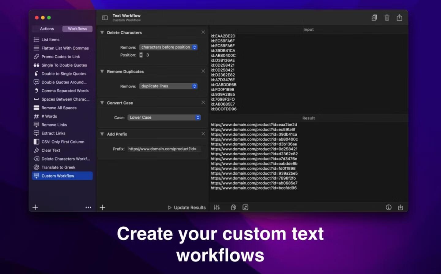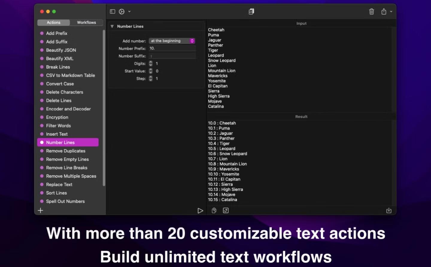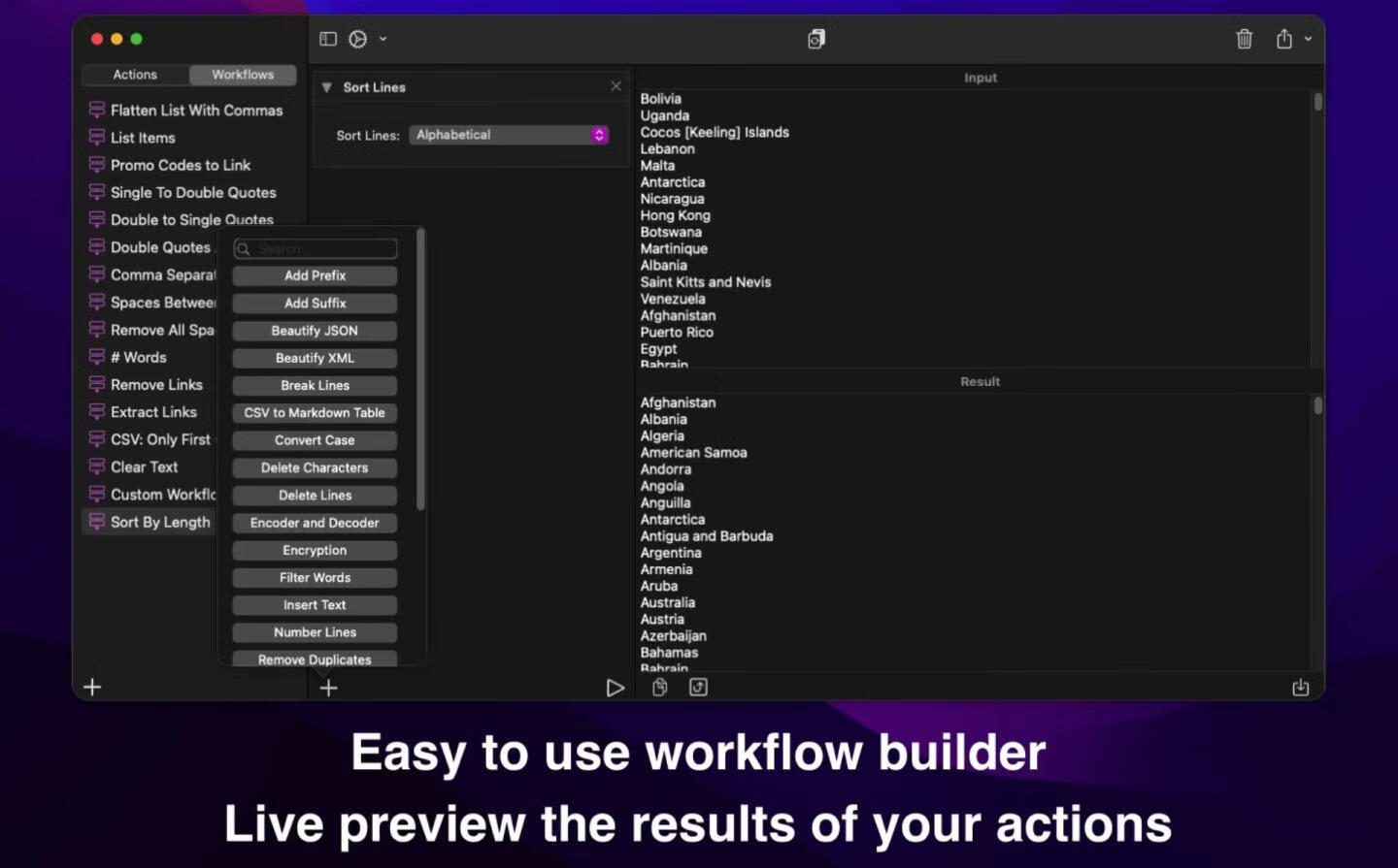 💡 告别重复枯燥的文本操作!Text Workflow 是专为效率而生的 智能文本自动化处理工具,通过预置的清洗、分析与定制化流程,将人工需数小时完成的文本任务压缩至秒级。无论是数据清洗、内容提炼还是情感判断,它都能用模块化操作替代碎片化劳动,特别适合处理日志、评论、文档等海量文本,堪称 文本处理效率加速器。📄