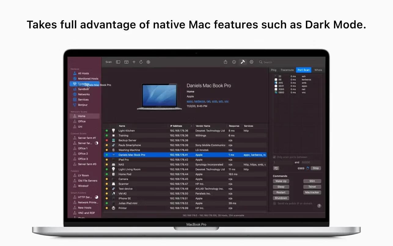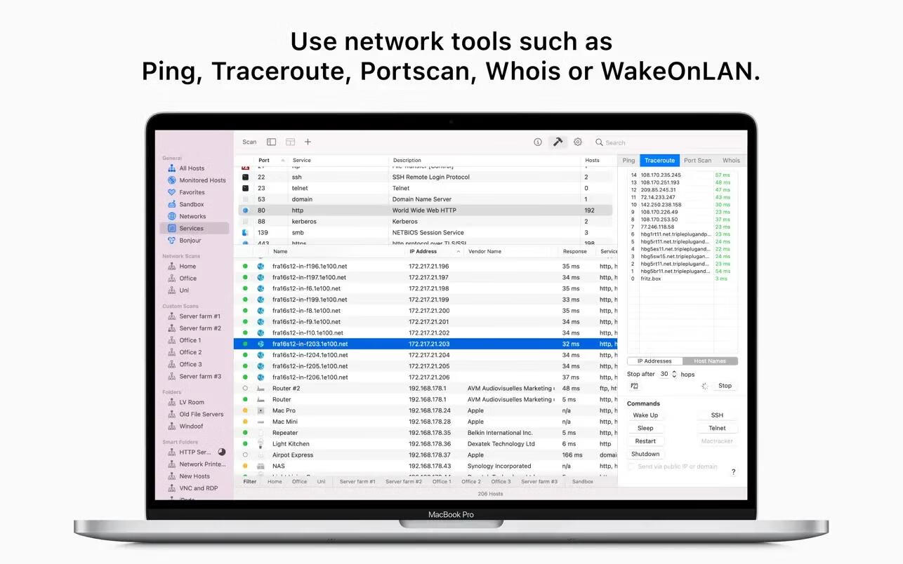 Network Radar是一款专为Mac设计的网络扫描工具,它让用户高效监控本地网络设备。差异化优势在于实时网络速度监测和Ping测试功能,结合快速扫描提供详细设备信息如IP地址、MAC地址及开放端口。✨易于使用且功能全面,这款Mac网络扫描工具简化了网络管理任务,帮助用户即时识别潜在问题,是家庭或办公环境的理想助手。