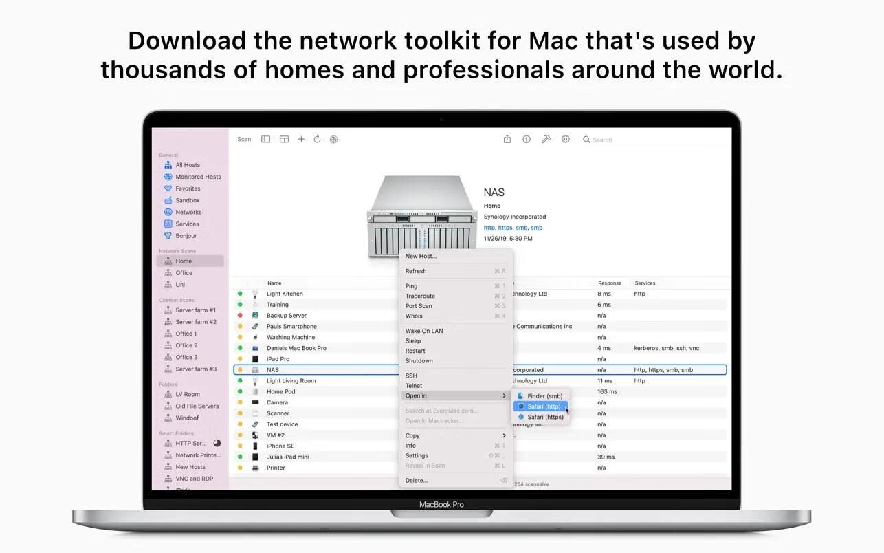 Network Radar适用于多类环境:家庭用户可监控智能电视或NAS设备;IT管理员能批量管理办公室网络;普通用户轻松查找丢失路由器的IP地址。作为一款高效的本地网络管理软件,它助力Mac用户解决日常网络故障,提升整体效率。💪