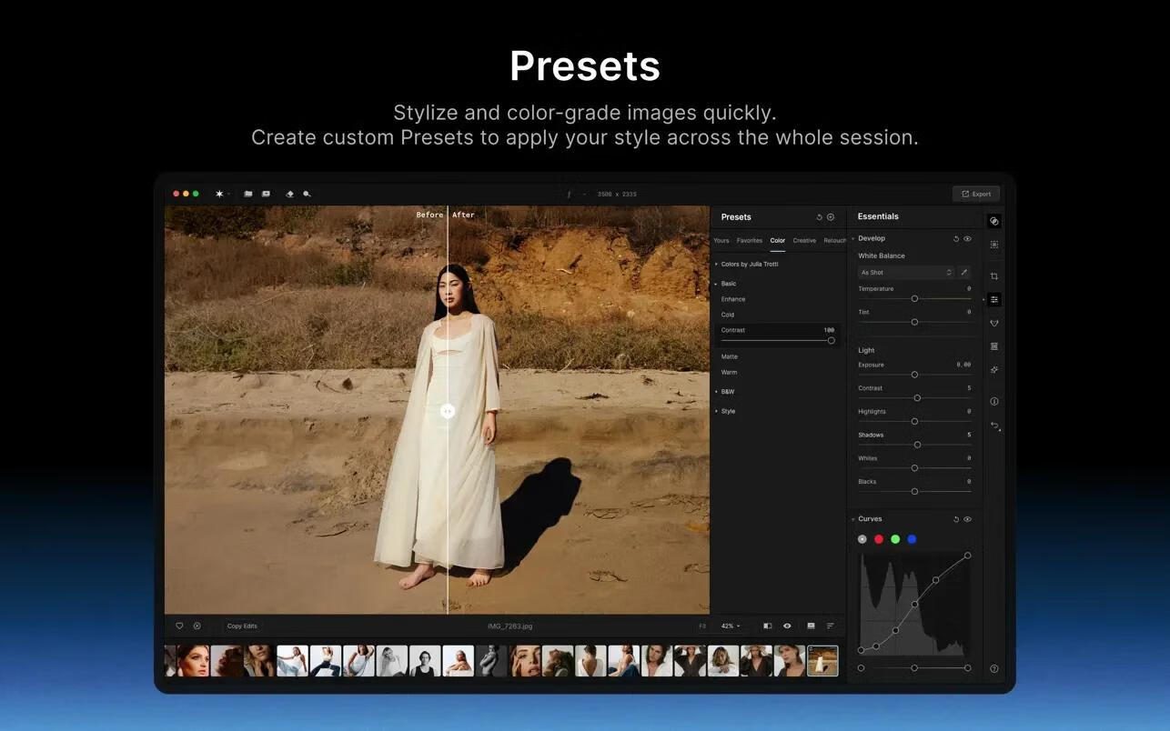 -批量处理。允许您以独特的作者风格编辑照片,并自动将更改应用于系列中的其他照片。