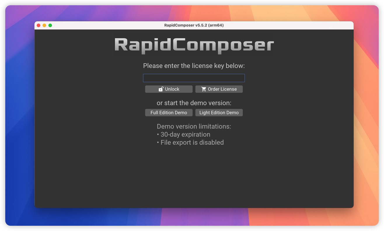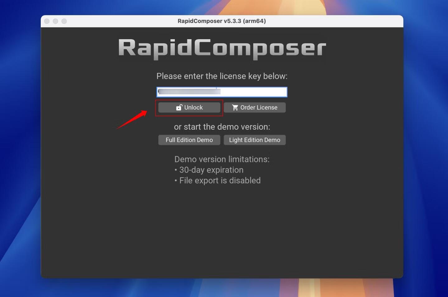 安装完成后打开RapidComposerV5,提示需要输入注册码