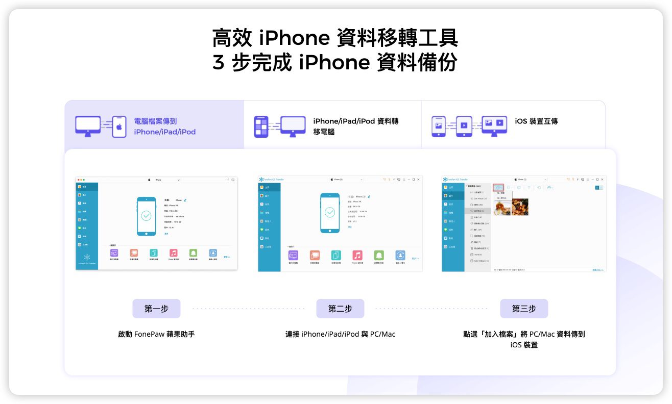 - 开始使用FonePaw iOS Transfer,轻松将iPhone,iPad和iPod上的媒体文件,照片,联系人,短信,书籍等传输到电脑/ iTunes。