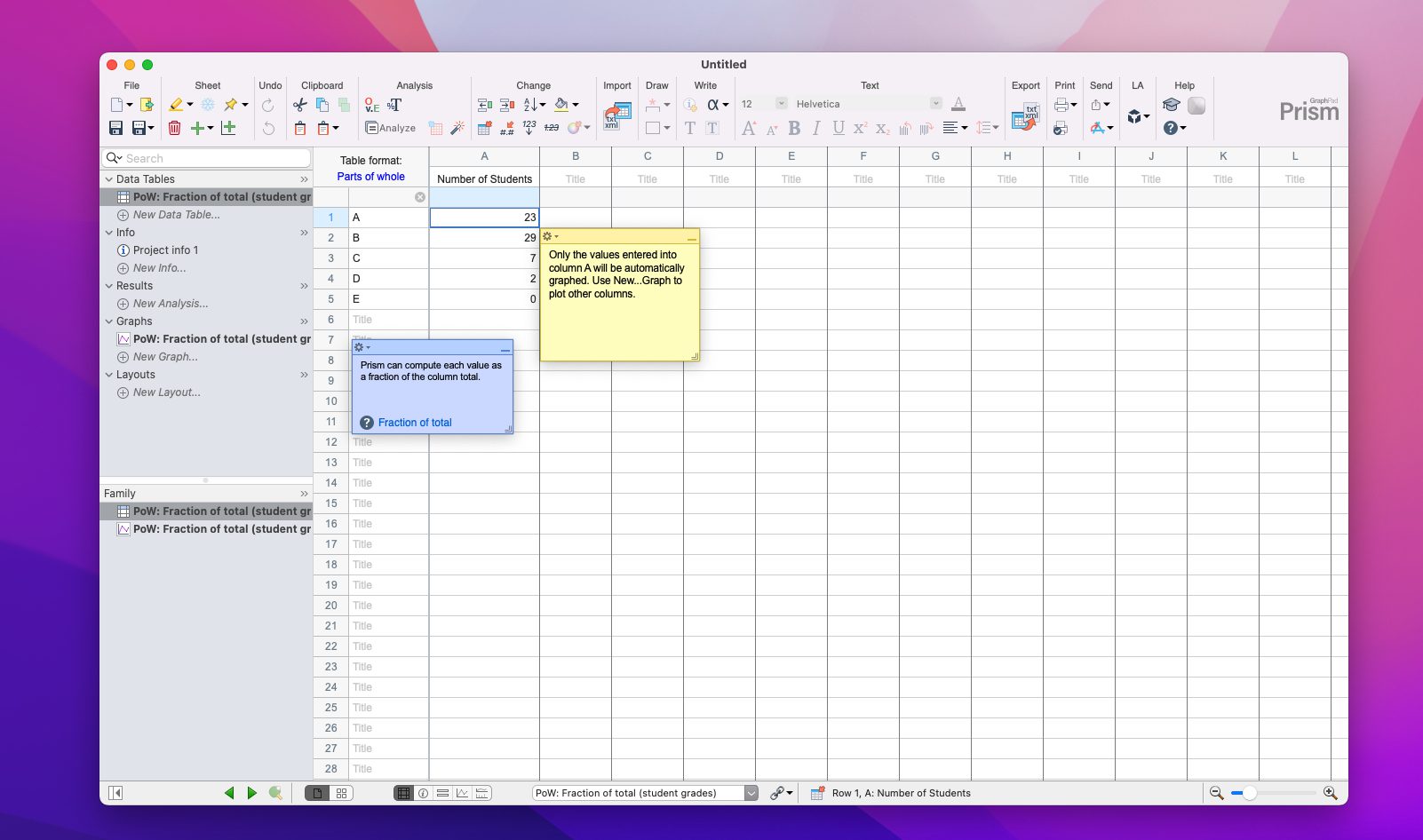 与电子表格或其他科学图形程序不同,prism有八种不同类型的数据表,专门为您要运行的分析而格式化。这样可以更轻松地正确输入数据,选择合适的分析并创建令人惊叹的图形。