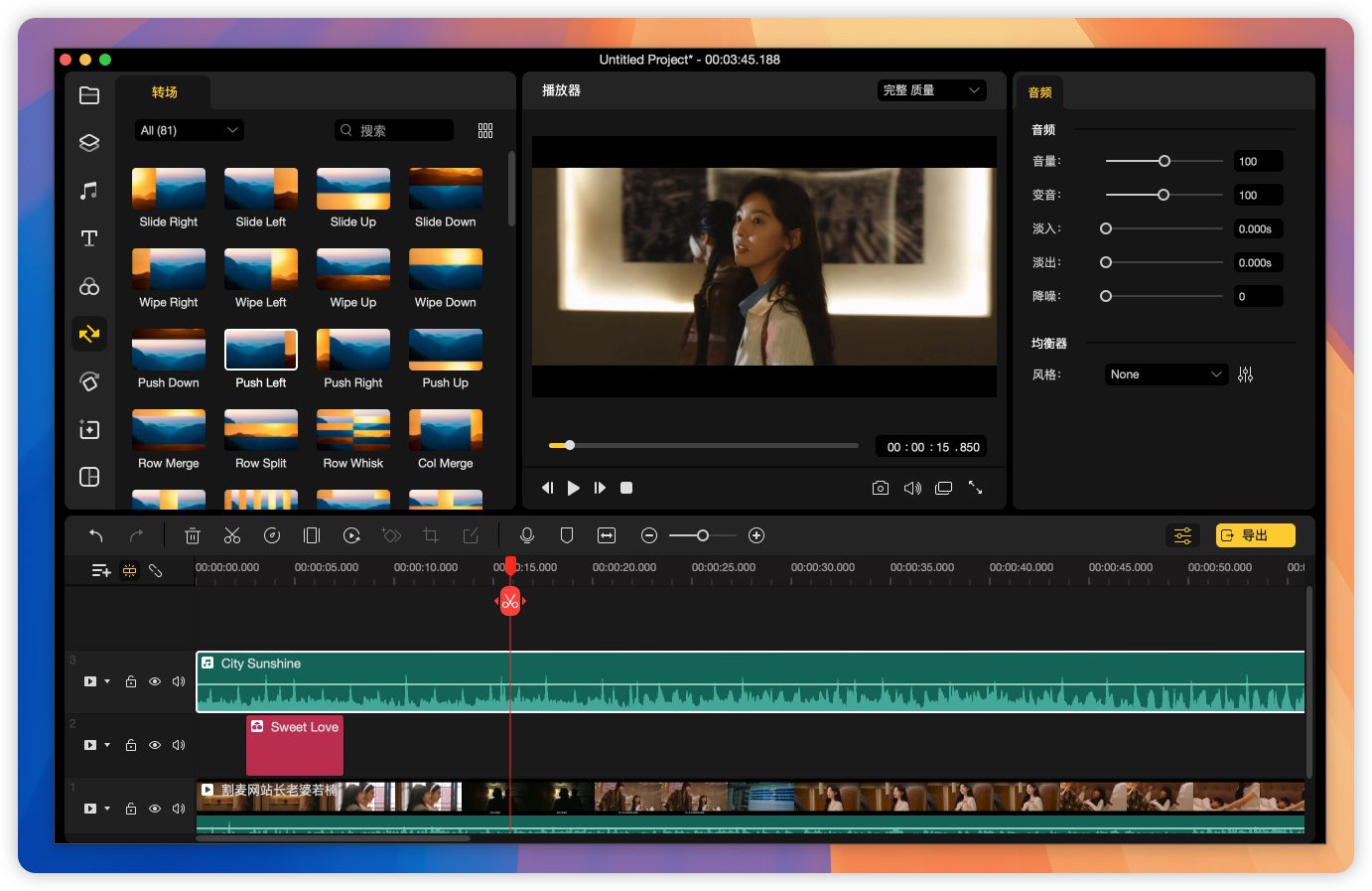 ⏱️ 支持100+轨道叠加(视频/音频/文字/贴图),关键帧动画、蒙版遮罩自由组合,媲美Premiere的精细度。 -