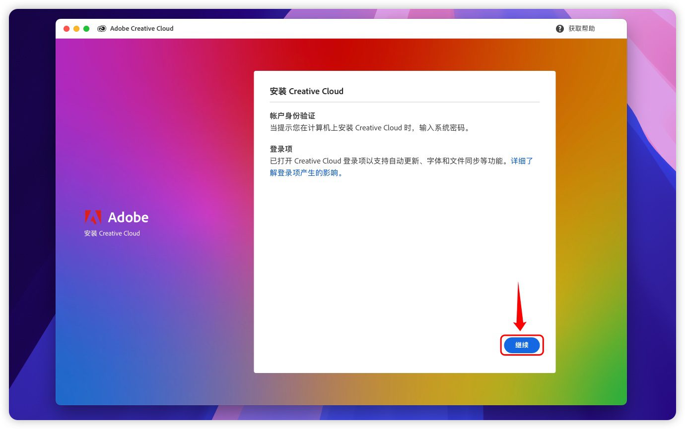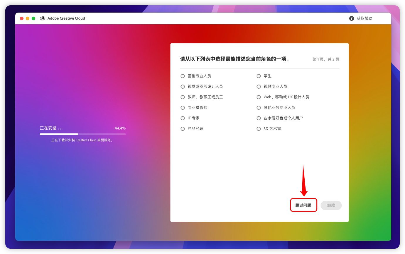 5.稍等片刻后Creative Cloud就安装完成,并点击跳过问题!