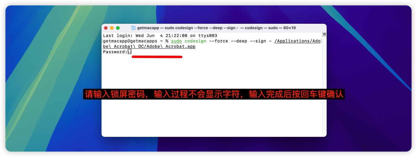 如勾选完Rosetta打开软件提示意外退出!请打开终端输入下方命令!回车!即可