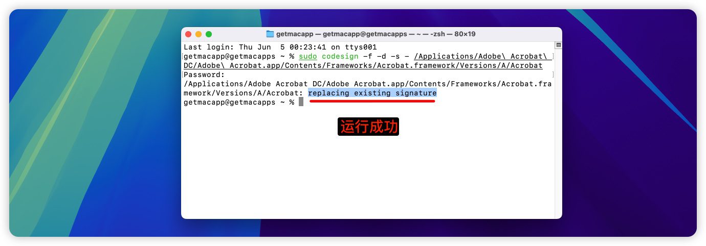sudo codesign -f -d -s - /Applications/Adobe\ Acrobat\ DC/Adobe\ Acrobat.app/Contents/Frameworks/Acrobat.framework/Versions/A/Acrobat