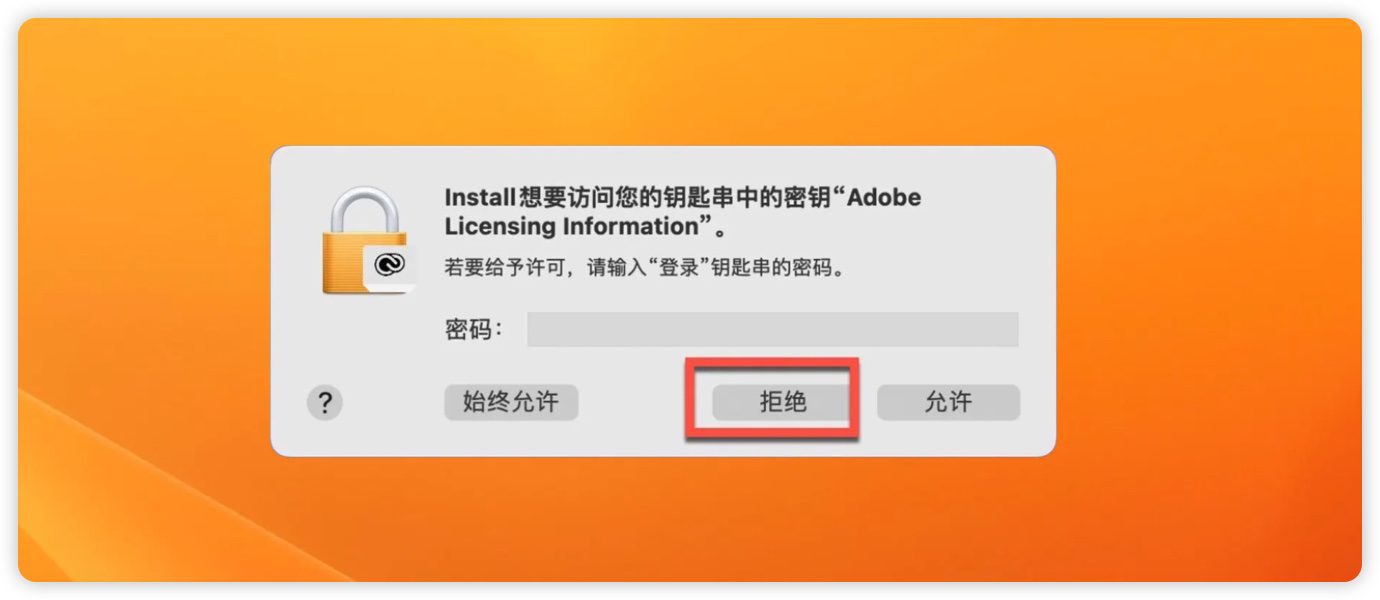 软件打开提示访问钥匙串密钥,选择“拒绝” 【如若多次出现请在多点击几次】