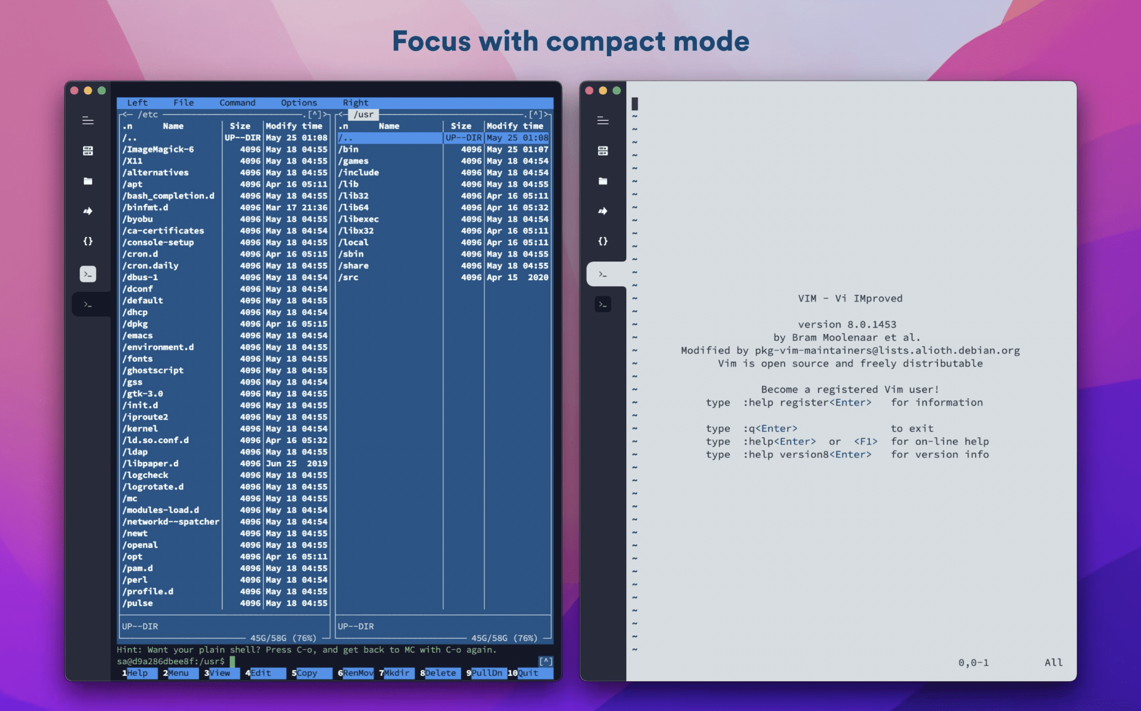 ✅ 内置终端监控器:原生支持htop、vim等命令行工具,系统资源消耗一目了然