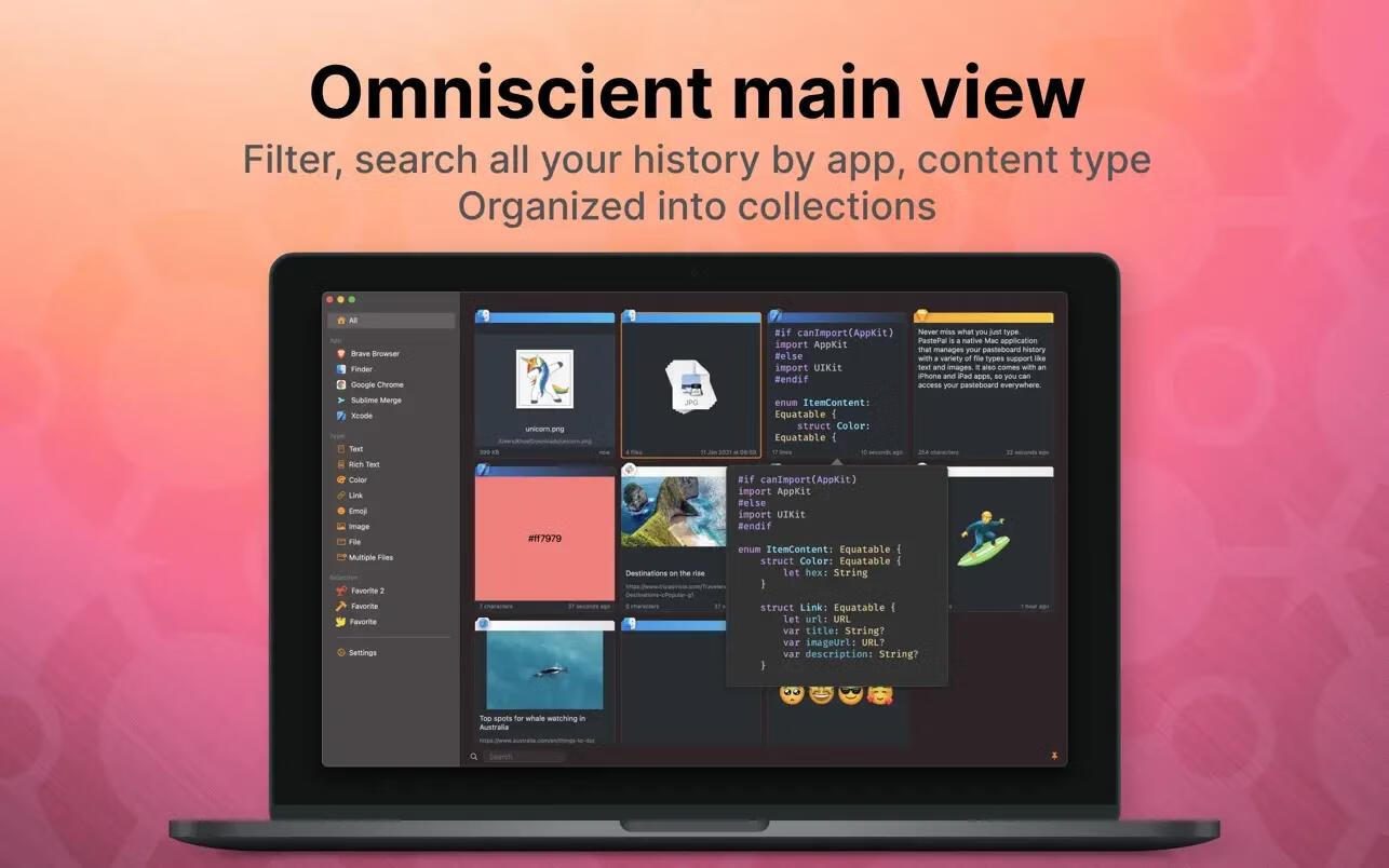 你是否厌倦了反复复制相同内容?🤔 PastePal 是一款专为 macOS 及 iOS/iPadOS 设计的原生剪贴板历史管理工具,它用纯 Swift 编写,确保极致流畅与高效。与基础系统功能不同,它赋予你对剪贴板历史的完全掌控权,并突破性地支持在 Mac、iPhone 和 iPad 上无缝运行。通过手动启用 iCloud 同步设置,你的所有剪贴板条目都能在苹果生态内安全、实时同步,彻底告别设备间信息孤岛,大幅提升多设备工作流的连贯性。💪